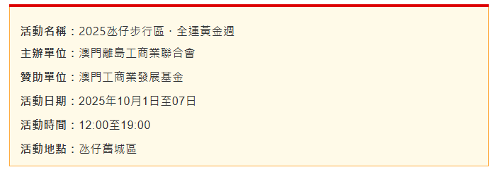 2025氹仔步行區・全運黃金週